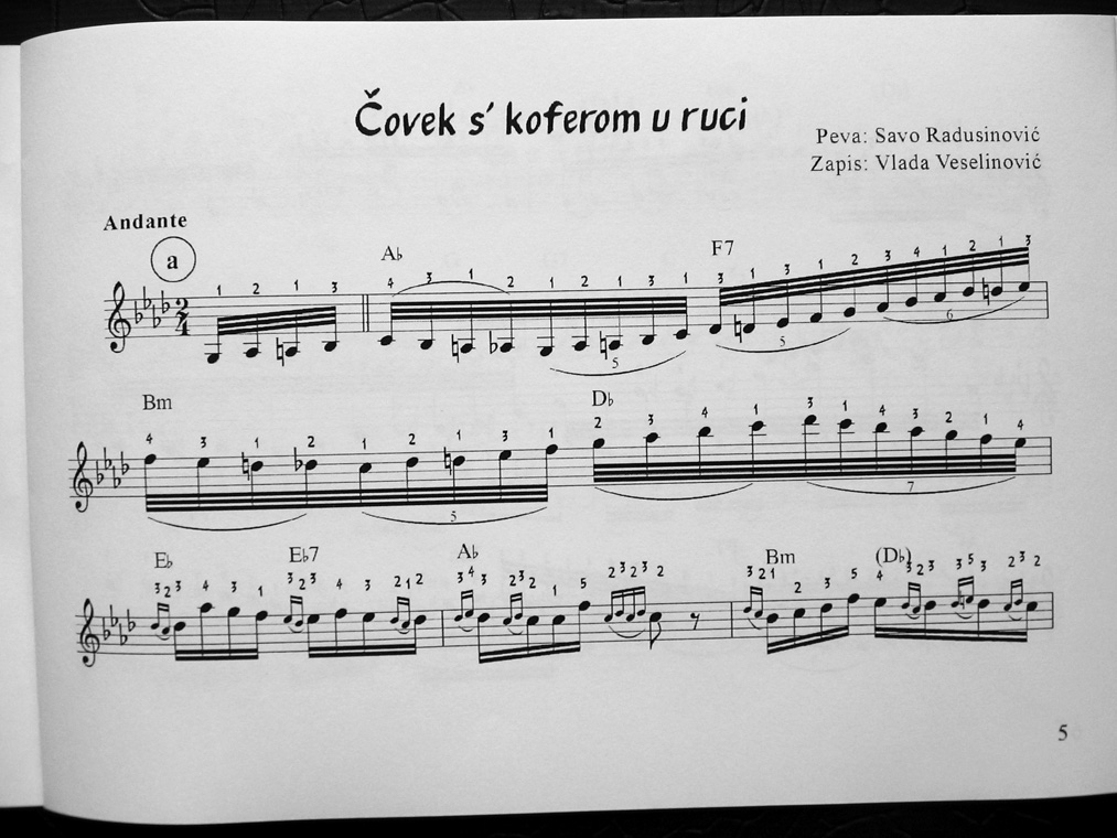 Primer notnog zapisa iz zbirke „Virtuozni foršpili za harmoniku“